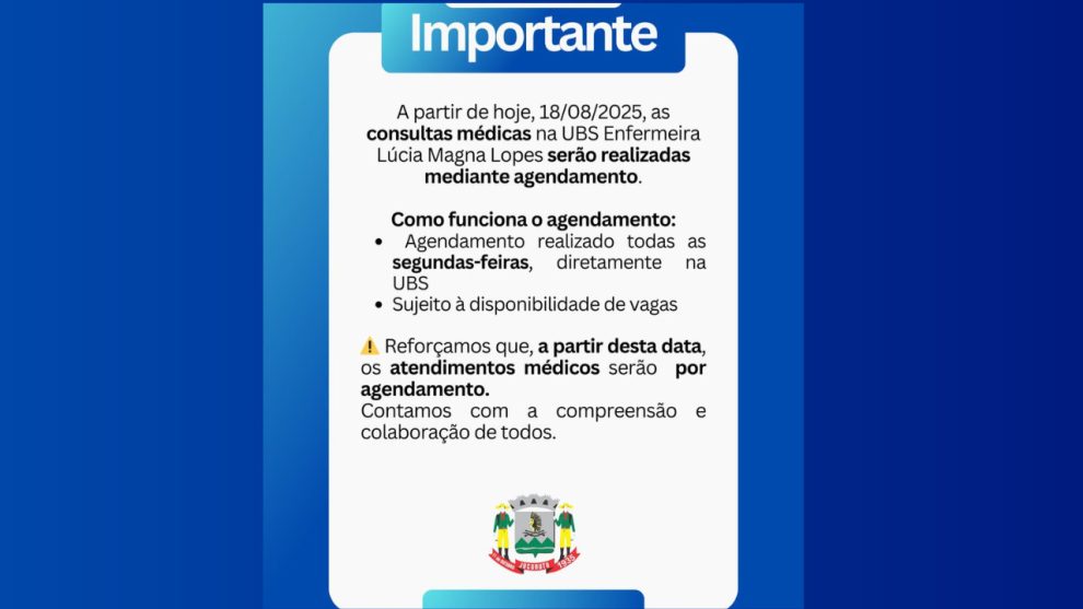 De acordo com o comunicado oficial, os agendamentos serão feitos apenas às segundas-feiras, diretamente na UBS, e estarão sujeitos à disponibilidade de vagas. Ou seja, quem não conseguir marcar no início da semana, ficará sem atendimento, mesmo em casos de necessidade.