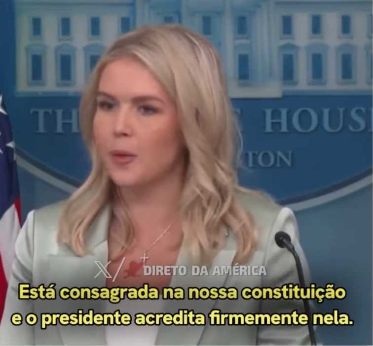 Durante coletiva, questionada sobre possíveis novas sanções ao Brasil em razão do processo contra Bolsonaro, Leavitt não antecipou medidas, mas reforçou que o tema é prioridade.