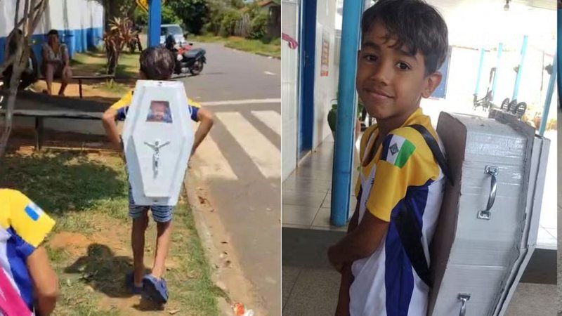 Uma criança de apenas oito anos protagonizou uma cena que emocionou a todos na cidade de Ouro Preto do Oeste, em Rondônia. No dia da ‘mochila maluca’, o menino levou um caixão feito de papelão em homanagem ao pai, que trabalhava como agente funerário e faleceu após acidente de trânsito.