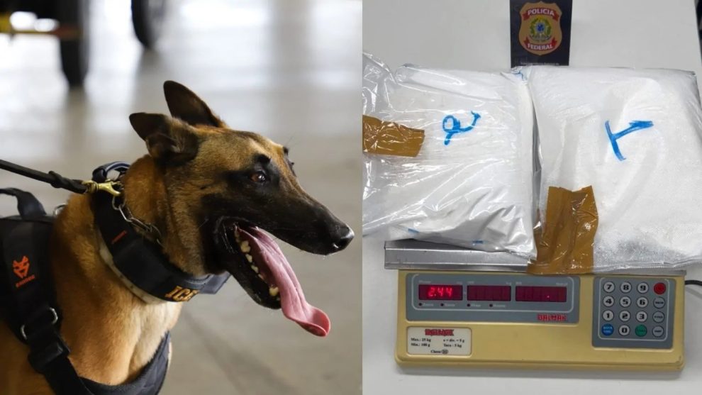 A apreensão ocorreu durante ação de fiscalização de rotina, com o apoio do cão detector de drogas Ice, que indicou a presença de substância ilícita em uma das malas vistoriadas.