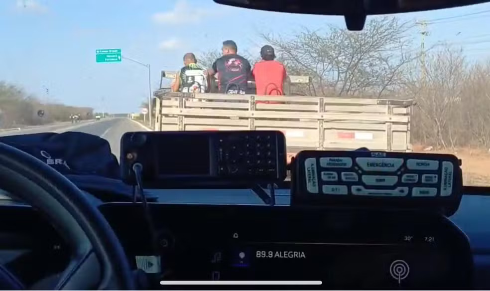 A Polícia Rodoviária Federal flagrou, em menos de uma hora, dois casos de transporte irregular de passageiros em carrocerias de veículos na BR-304, no Rio Grande do Norte, na manhã deste domingo (14).