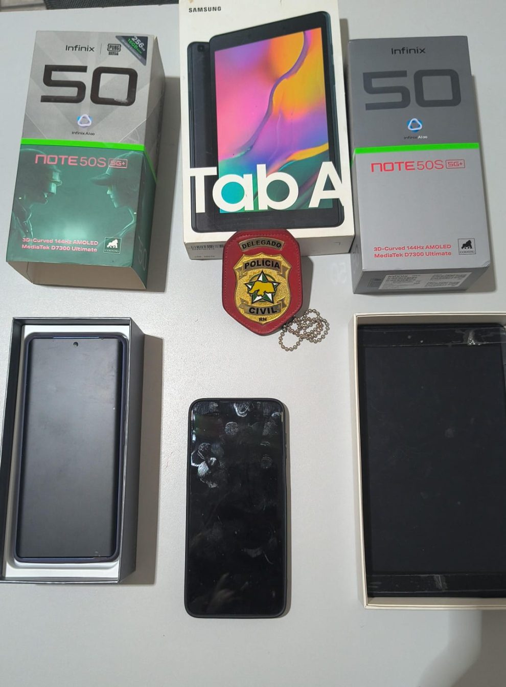 Durante o cumprimento do mandado, os policiais apreenderam dois aparelhos celulares e um tablet, que serão analisados e podem contribuir para o aprofundamento das investigações. O suspeito foi interrogado no decorrer da ação.