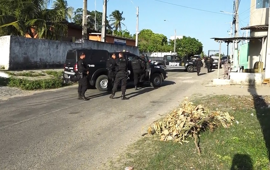 A ação desta quarta-feira aconteceu no distrito de Timbaúba. Além de diversos policiais em solo, a operação contou com o helicóptero da Secretaria de Segurança do RN. Até o momento, três suspeitos já foram presos e um morreu.