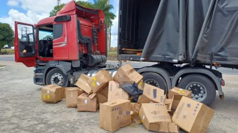 Motorista disse que saiu de São Paulo com a carga e levaria o material para o Rio Grande do Norte A Polícia Rodoviária Federal (PRF) e a Receita...