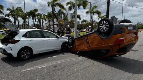 Um carro onde estavam uma mãe e um bebê de três meses capotou após uma colisão que aconteceu no fim da manhã desta segunda-feira (1) na rotatória da...