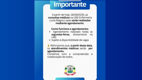 A partir desta segunda-feira, 18 de agosto de 2025, a Prefeitura de Jucurutu anunciou que os atendimentos médicos na UBS Enfermeira Lúcia Magna Lopes...