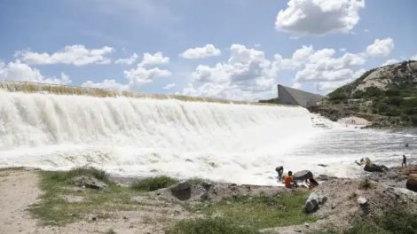 As águas da transposição do Rio São Francisco continuam descendo pelo leito do Rio Piranhas, no trecho que corta o Rio Grande do Norte, em direção à...